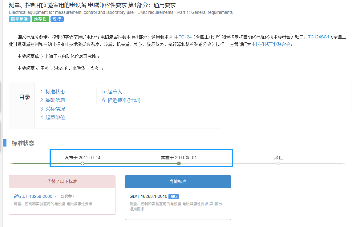 最新消息,2025年06月30日,根据国家标准化管理委员会官网显示,中国国家标准公告,创京检测总经理赵华胜参与编制的标准GB/T 18268.1—2025《测量、控制和实验室用的电设备 电磁兼容性要求 第1部分:通用要求》推荐性国家标准批准发布,新版标准将于2026年1月1日起正式实施。